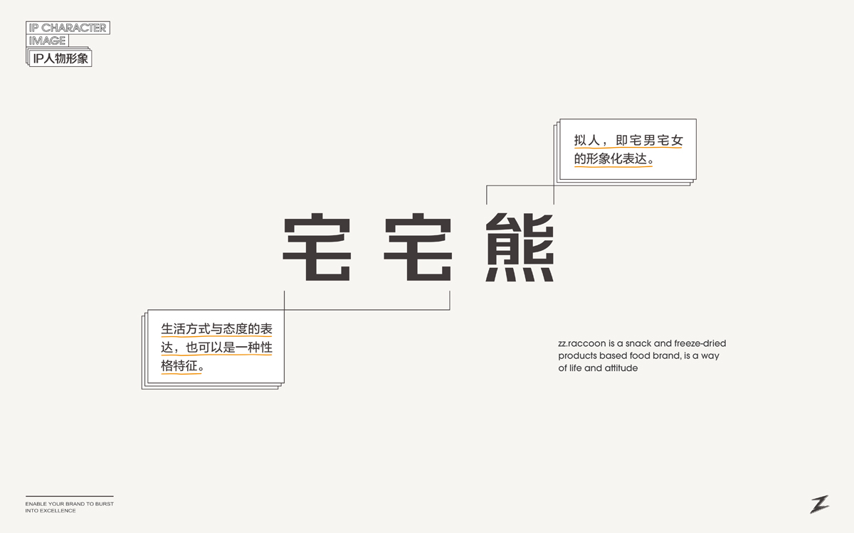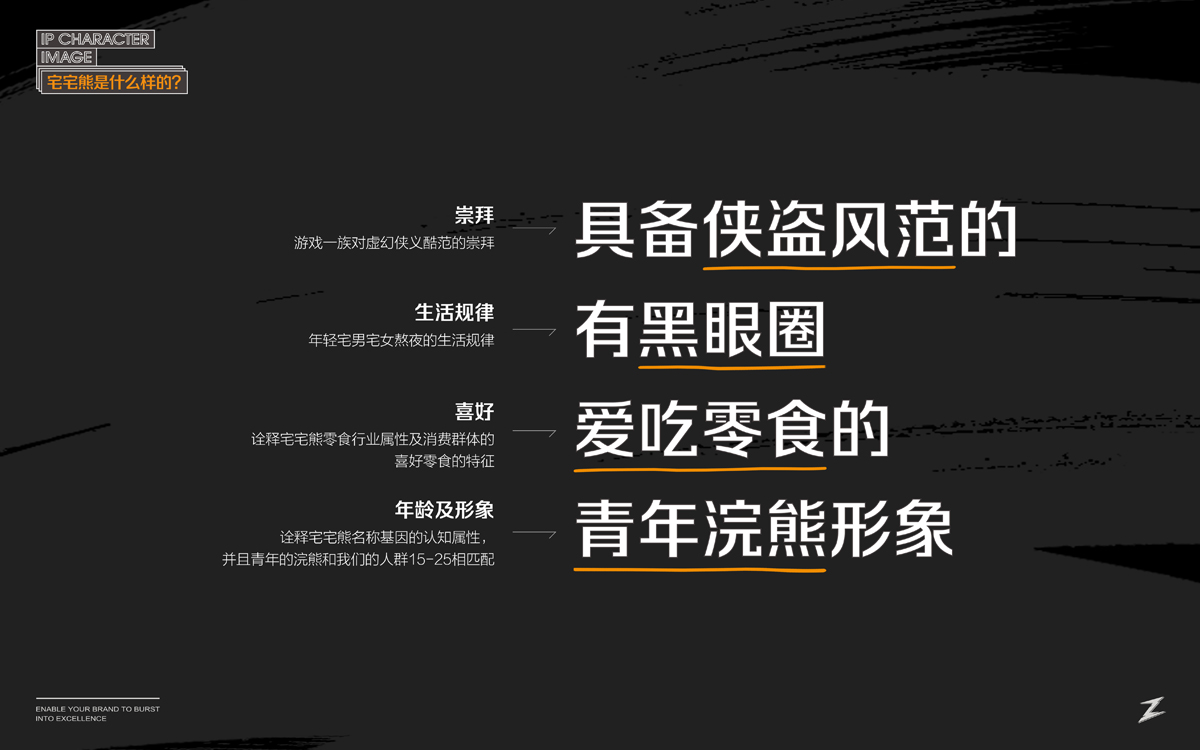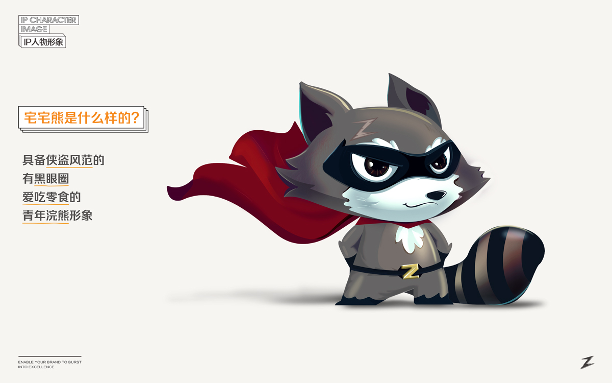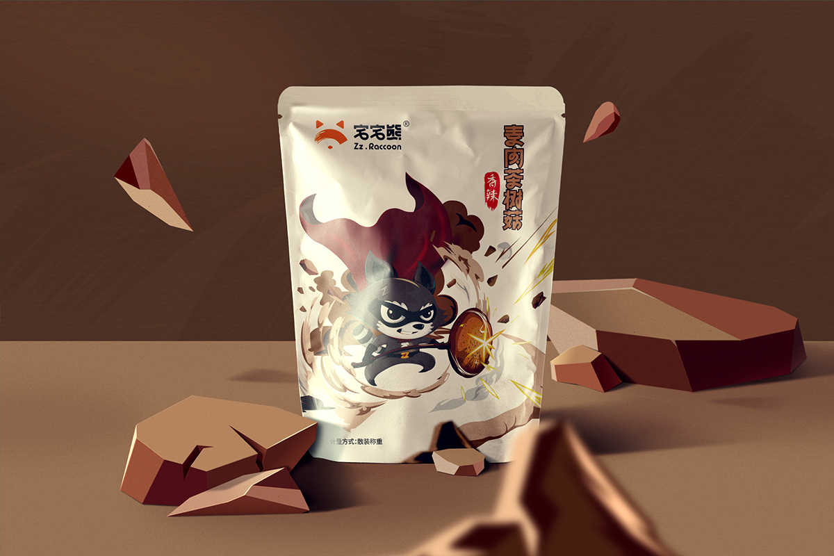 宅宅熊,在于一個“宅”字。我們通過精細化人群定位,以游戲直播、新媒體推廣渠道為主的差異化媒介,塑造了一只玩味、酷帥、俠義的浣熊IP,結合動漫游戲相關的IP角色植入到系列包裝視覺中,與目標消費群形成情感共鳴,成為互聯(lián)網(wǎng)休閑食品市場的新興寵兒。。