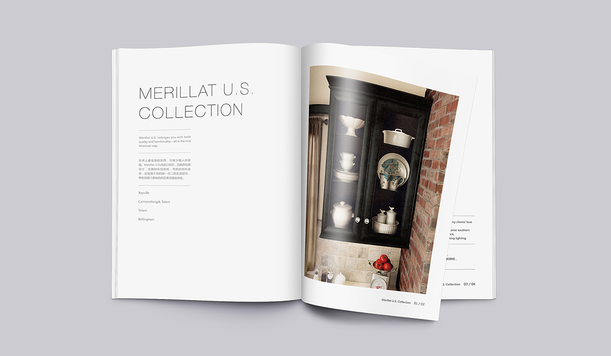 為Merillat美睿廚房打造出符合中國高端市場的國際化形象,品牌涉及研發(fā)、生產(chǎn)、銷售到宣傳所需要的整套系統(tǒng)性的形象建設(shè),正午嚴(yán)謹(jǐn)配合各項目具體落地執(zhí)行;在產(chǎn)品畫冊中,涵蓋了空間場景設(shè)計、拍攝腳本、產(chǎn)品軟裝、后期3d合成、畫冊設(shè)計等全案的策劃與實(shí)施。