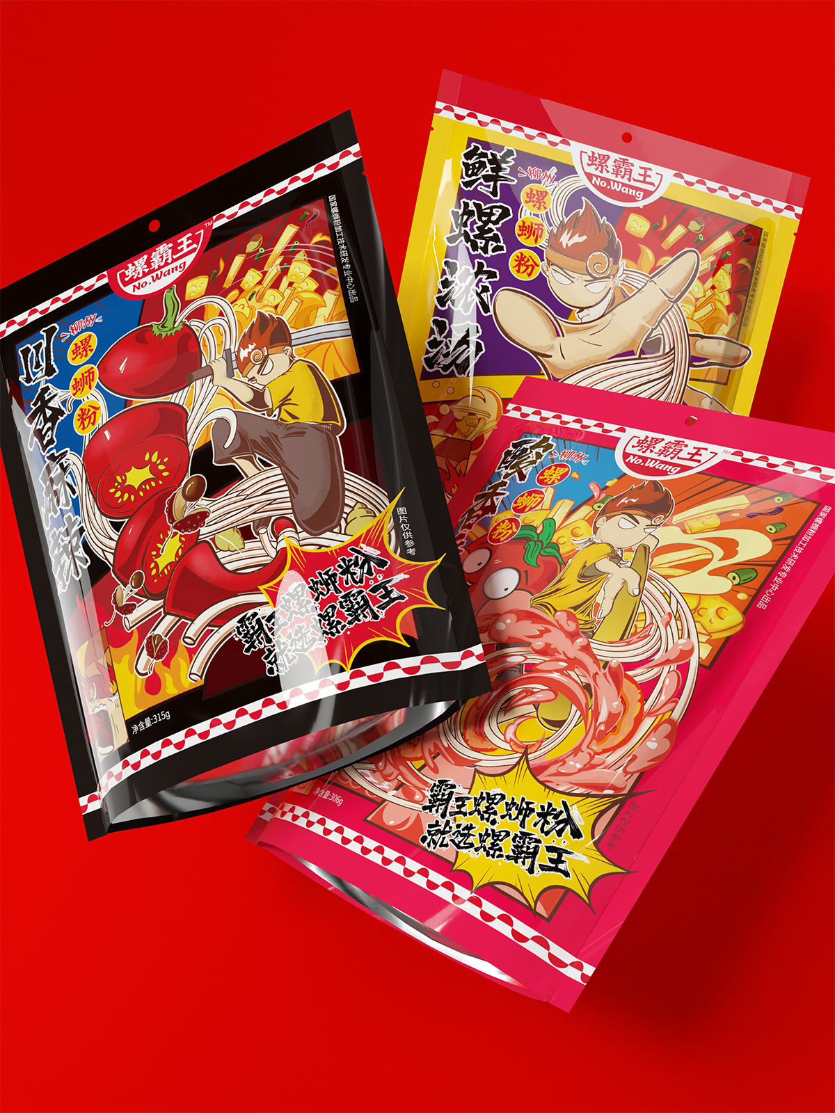 從現(xiàn)代年輕人追求趣味性、個(gè)性化、高顏值的消費(fèi)動(dòng)機(jī)出發(fā),針對(duì)螺霸王活力系列產(chǎn)品我們提出創(chuàng)意性主題【霸王行江湖 煮粉論英雄】。